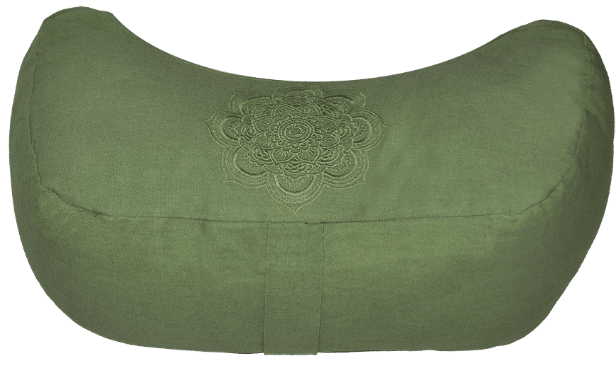 Chakra Mandala embroidered crescent moon zafu cushion – Olive Green