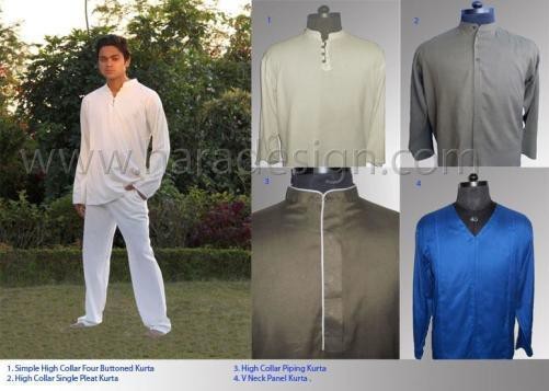 Full sleeves Indian kurta with three loop buttons and high collar.