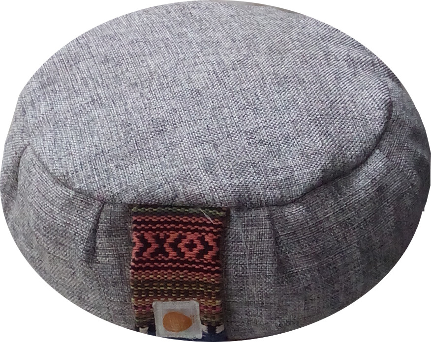 Zafu cushion in eco friendly jute fabric with concealed zips with buckwheat filling and easy carry on handle are popular with mediators since the cushion allows for ample support that is easily adjustable during meditation sessions.